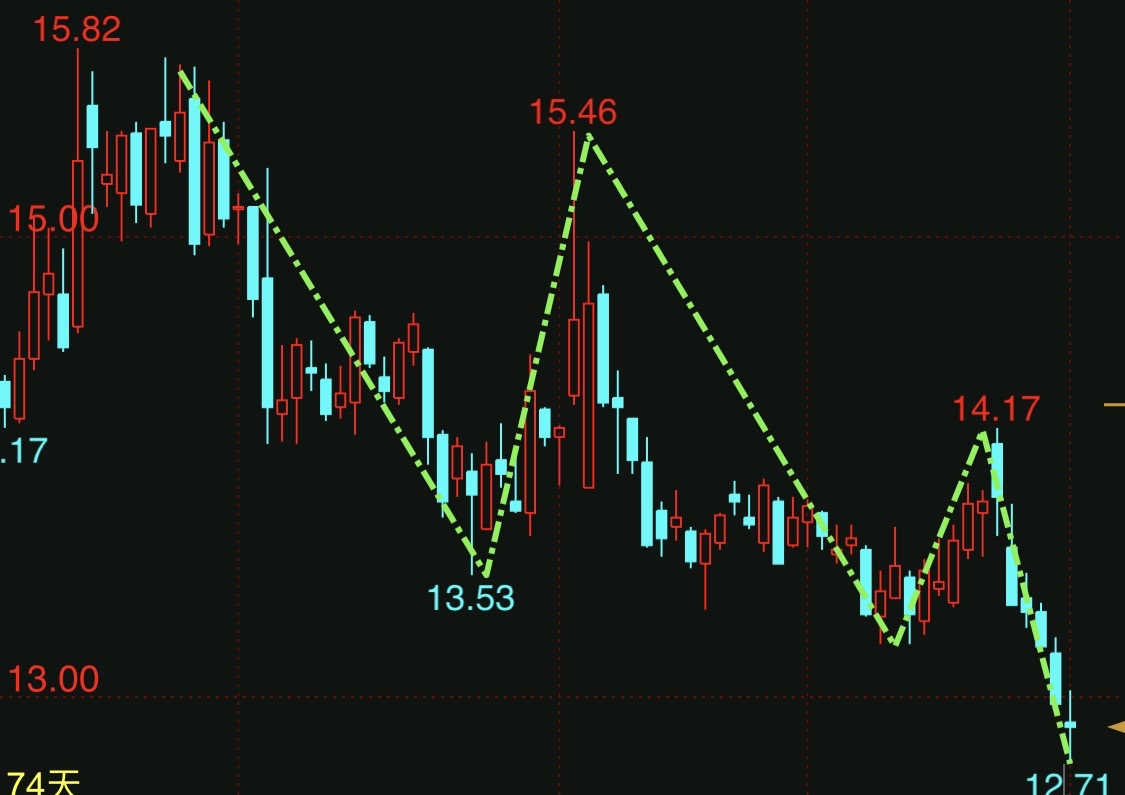 兄弟们,从这三波N下跌来看,这种操盘水平怎么样?每一波反弹越来越弱,下跌力度加大