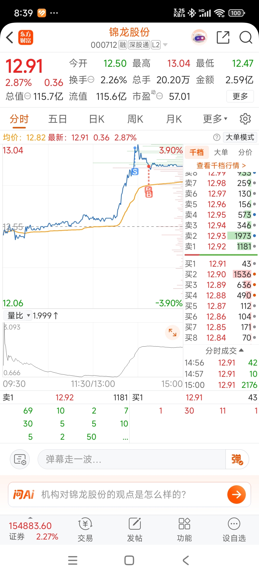 $锦龙股份(SZ000712)$ 还好卖出的一半又接回来了,人气又起来了,虫虫好久都没涨停板了……