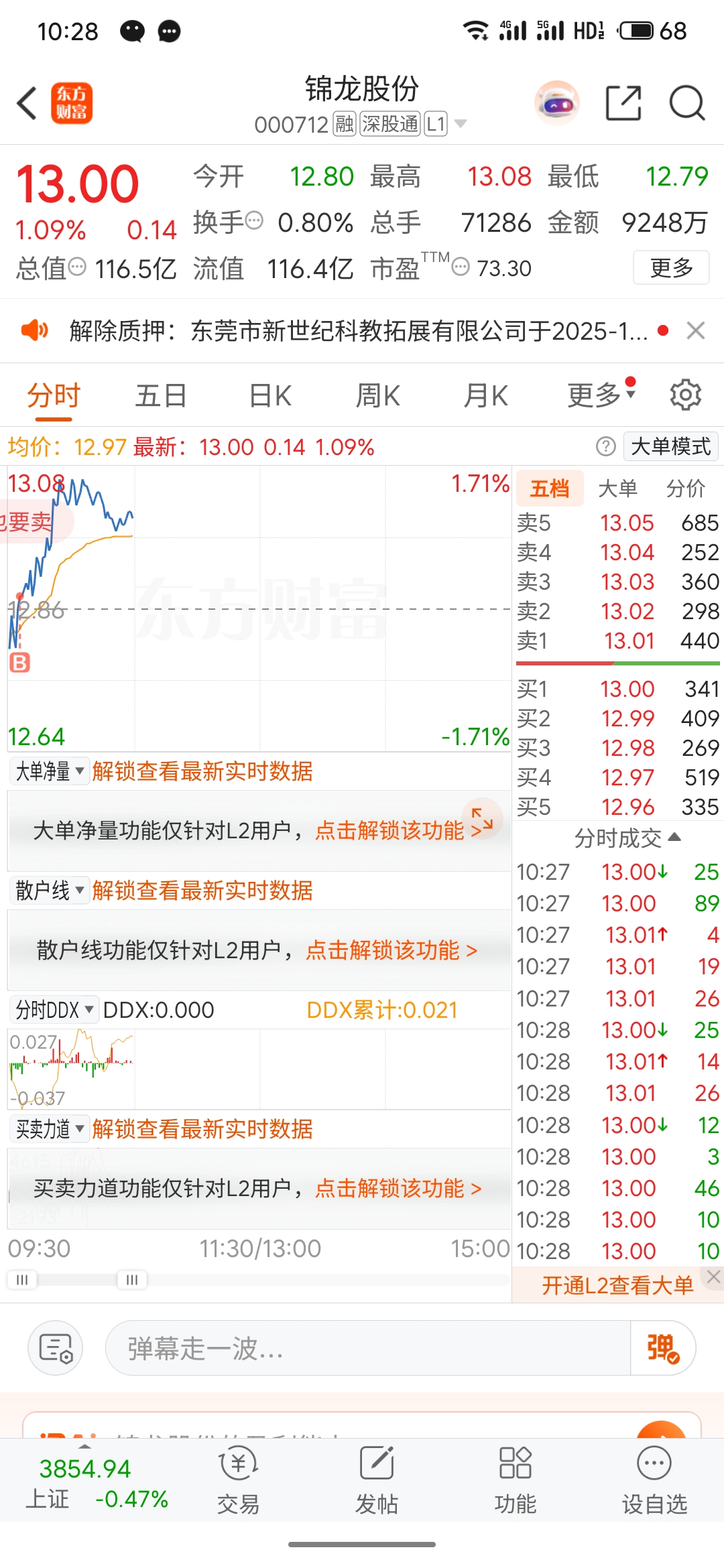 $锦龙股份(SZ000712)$ 是不是就因为我买了?不涨了