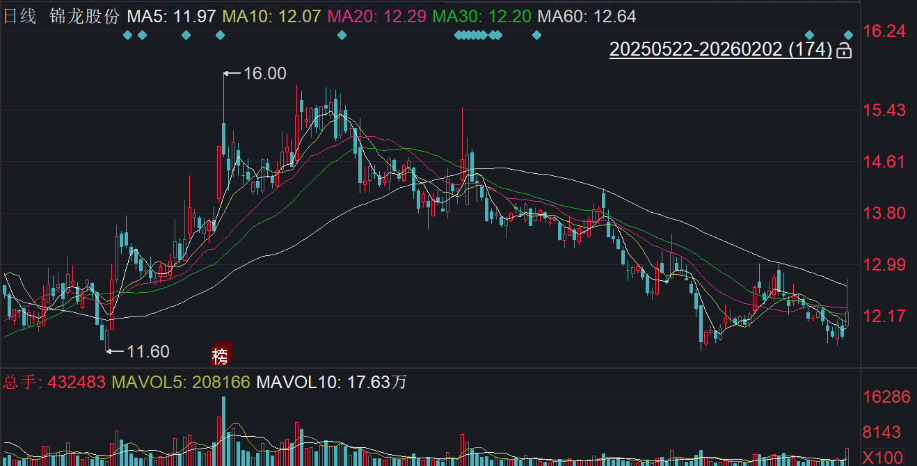 二级市场上,截至2月2日收盘,锦龙股份上涨3.38%报12.23元/股,总市值约109.58亿元,近一年来公司股价近乎“原地踏步”。