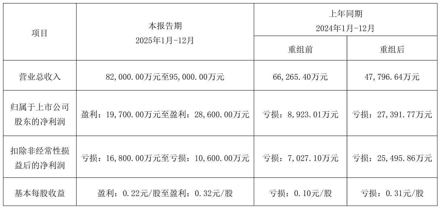 2025年度,锦龙股份预计经营业绩扭亏为盈,实现归母净利润为1.97亿元至2.86亿元,较2024年重组后2.74亿元的亏损大幅改善;营业总收入预计为8.2亿元至9.5亿元,2024年重组后为4.78亿元。
