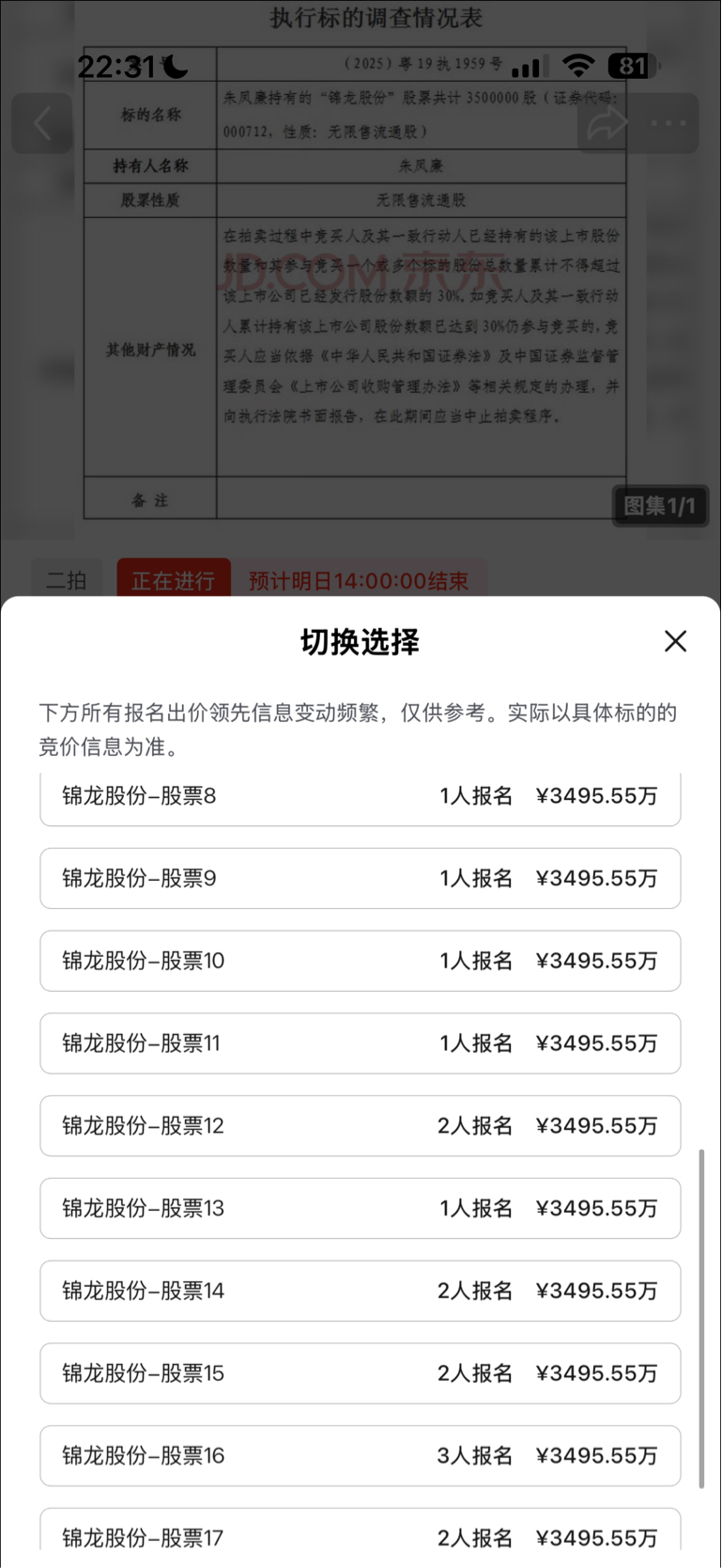 17个标全部有人报名,有的甚至有3人报名。明天是一场股权争夺大战,期待卢员外大杀