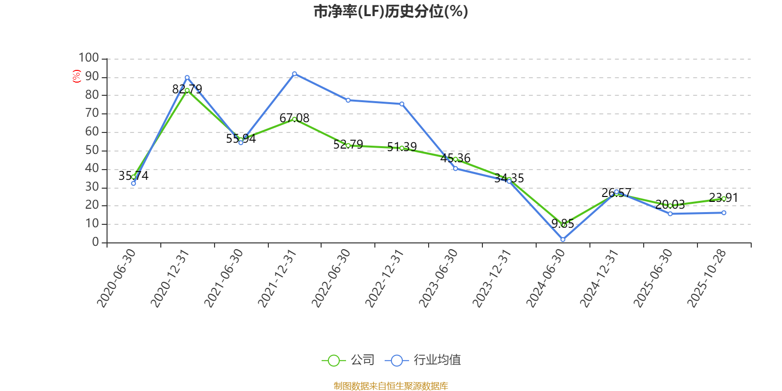 市盈率、市净率为负时,不显示当期分位数,会导致折线图中断。