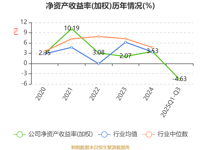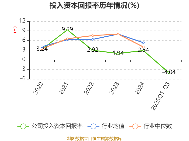 盈利能力方面, 2025年前三季度公司加权平均净资产收益率为-4.63%,同比下降0.91个百分点。公司2025年前三季度投入资本回报率为-4.04%,较上年同期下降0.37个百分点。