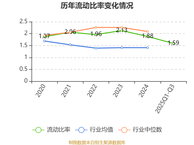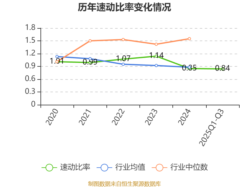 2025年前三季度,公司流动比率为1.59,速动比率为0.84。