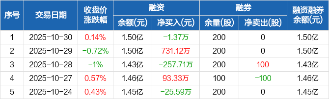 国投丰乐:融资净偿还1.37万元,融资余额1.5亿元(10-30)