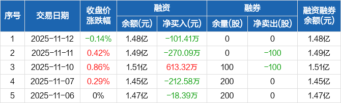 国投丰乐:融资净偿还101.41万元,融资余额1.48亿元(11-12)