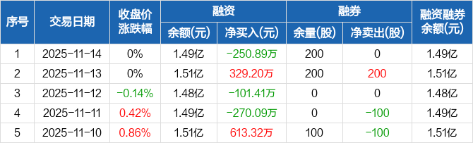 国投丰乐:融资净偿还250.89万元,融资余额1.49亿元(11-14)