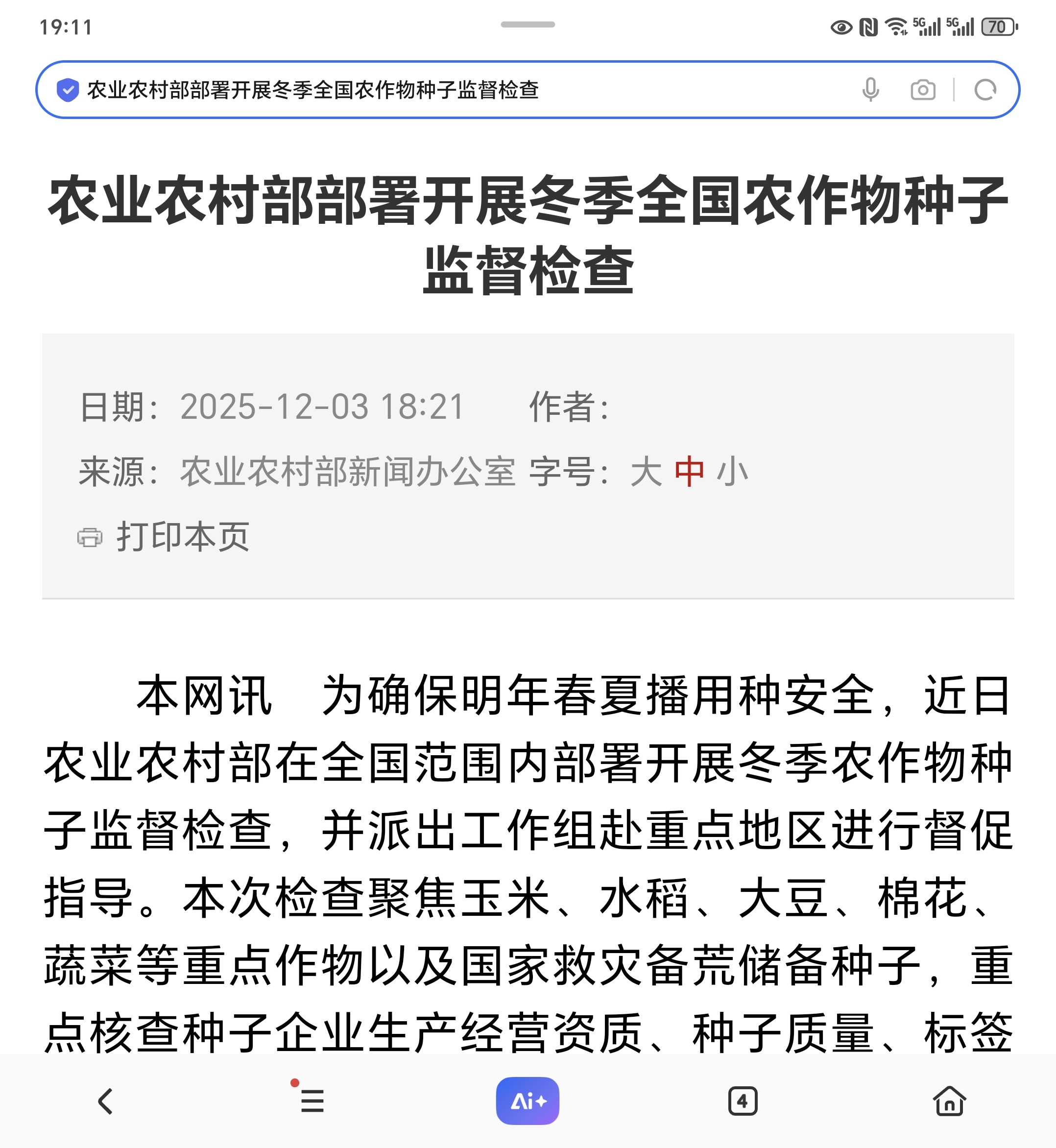 $国投丰乐(SZ000713)$ 种业明天大涨!