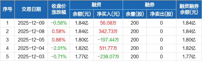 国投丰乐:融资净买入56.08万元,融资余额1.84亿元(12-09)