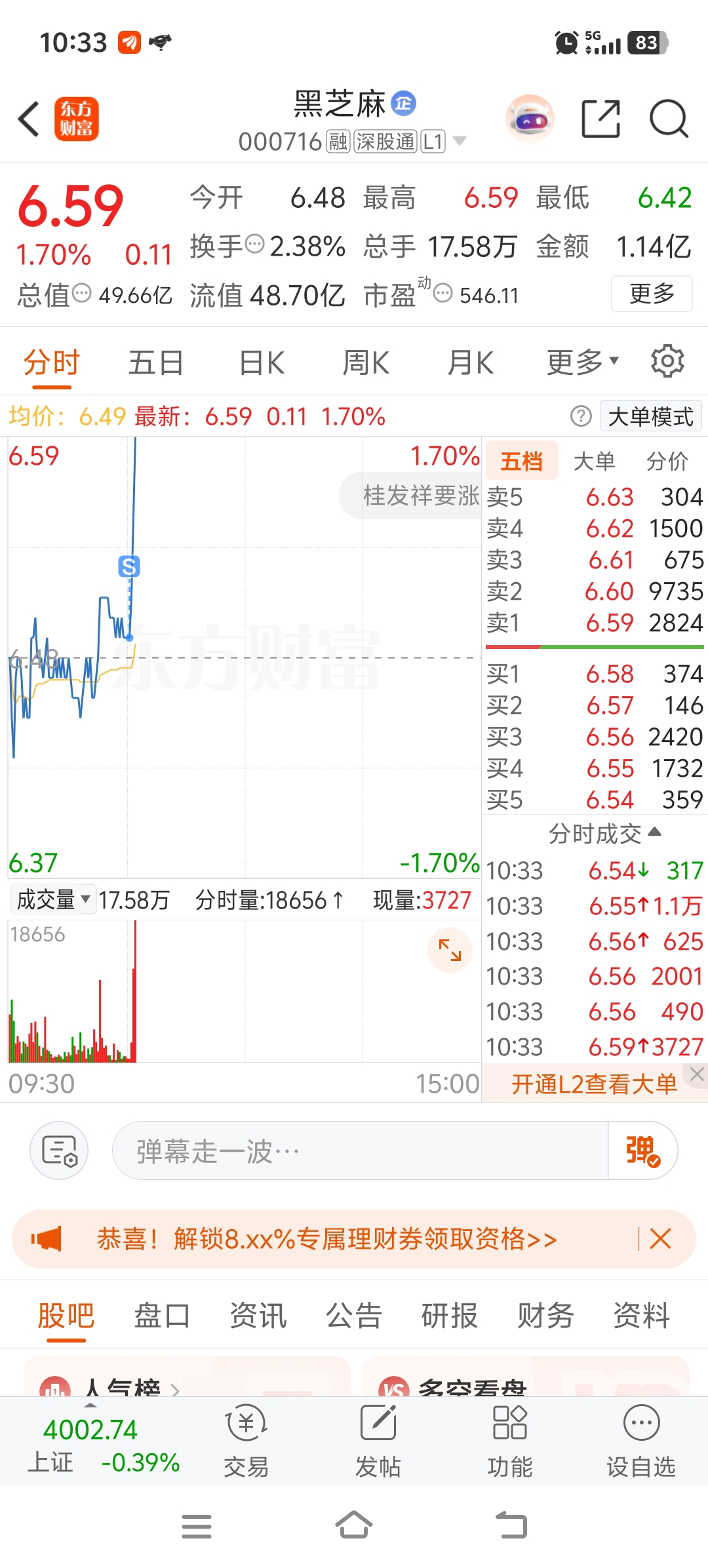 $黑芝麻(SZ000716)$ 我要笑死了