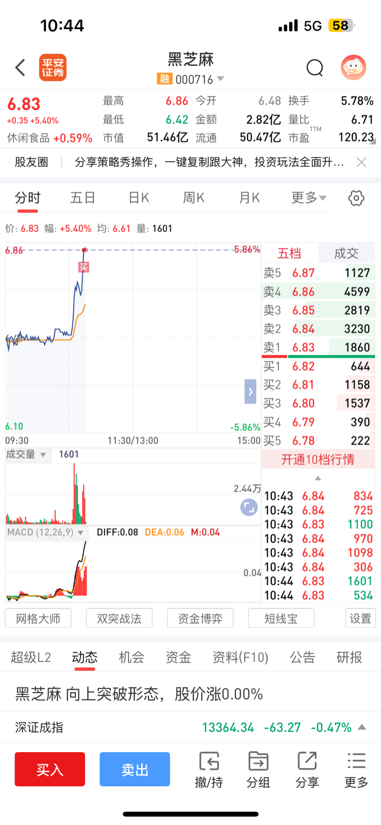 $黑芝麻(SZ000716)$ 喜买在高点