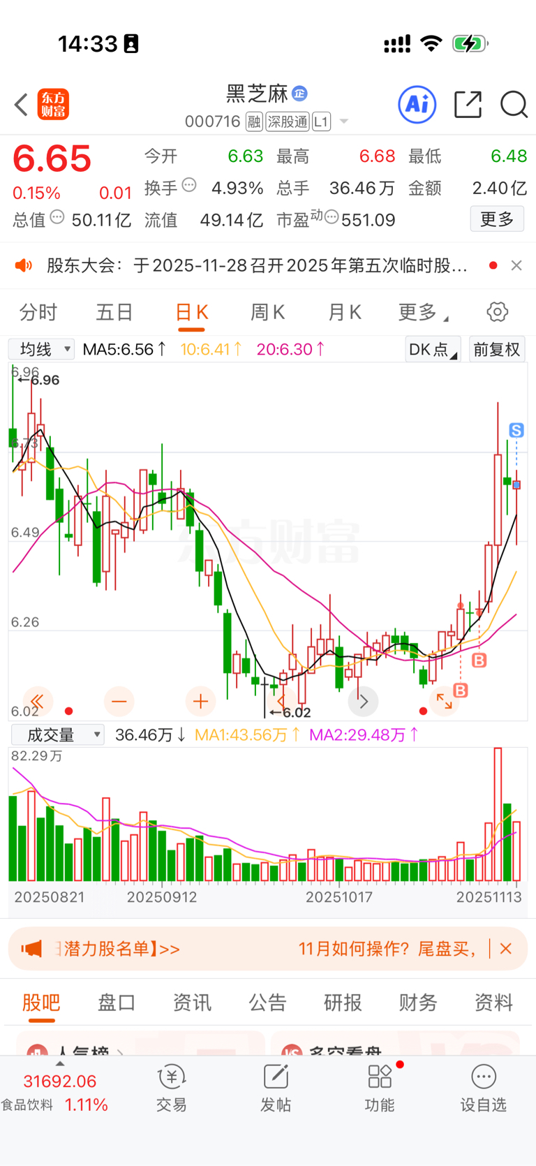 $黑芝麻(SZ000716)$ 留下的家人们发财