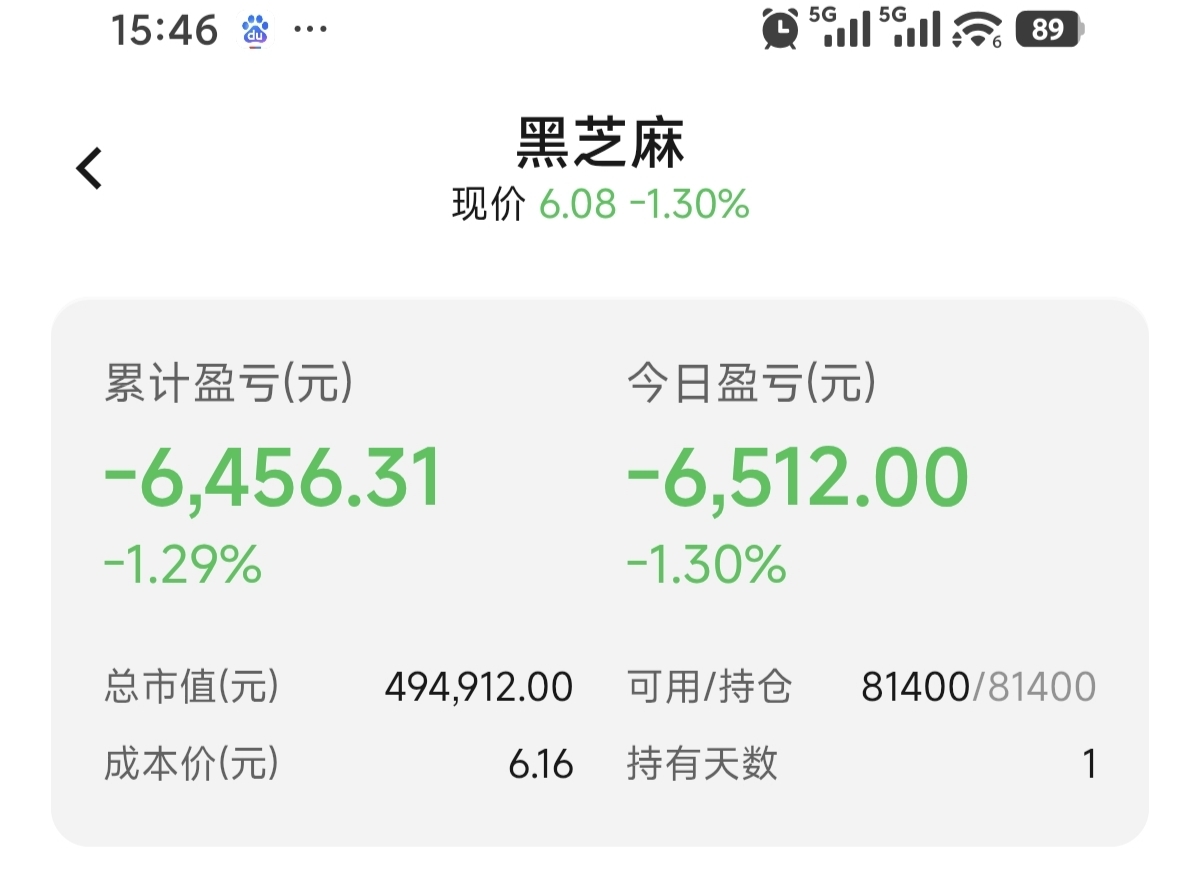 $黑芝麻(SZ000716)$ 才亏这点钱?明天要不要给我来个大的