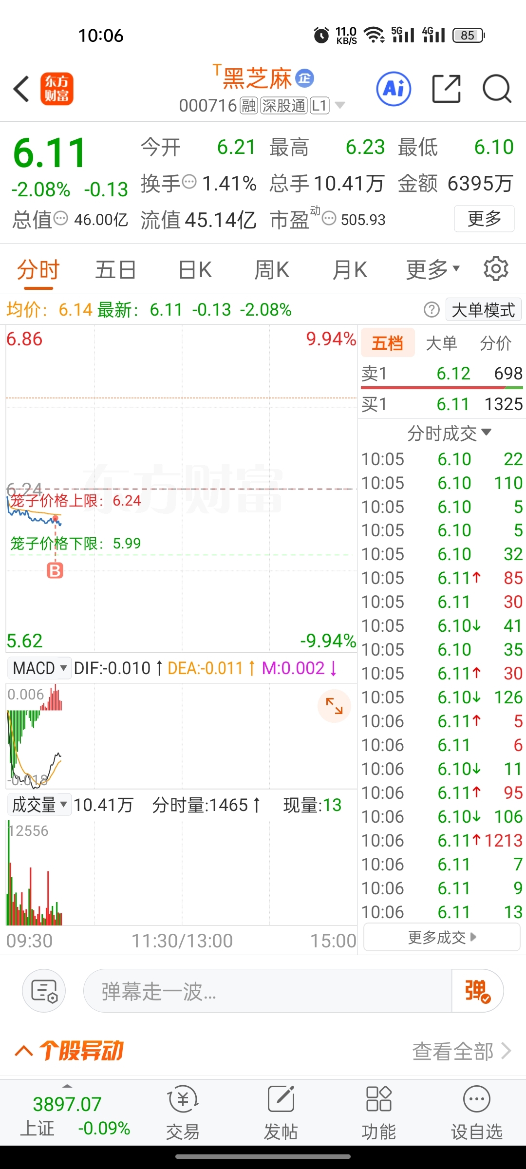 $黑芝麻(SZ000716)$ 随机加3000股,放一个月左右