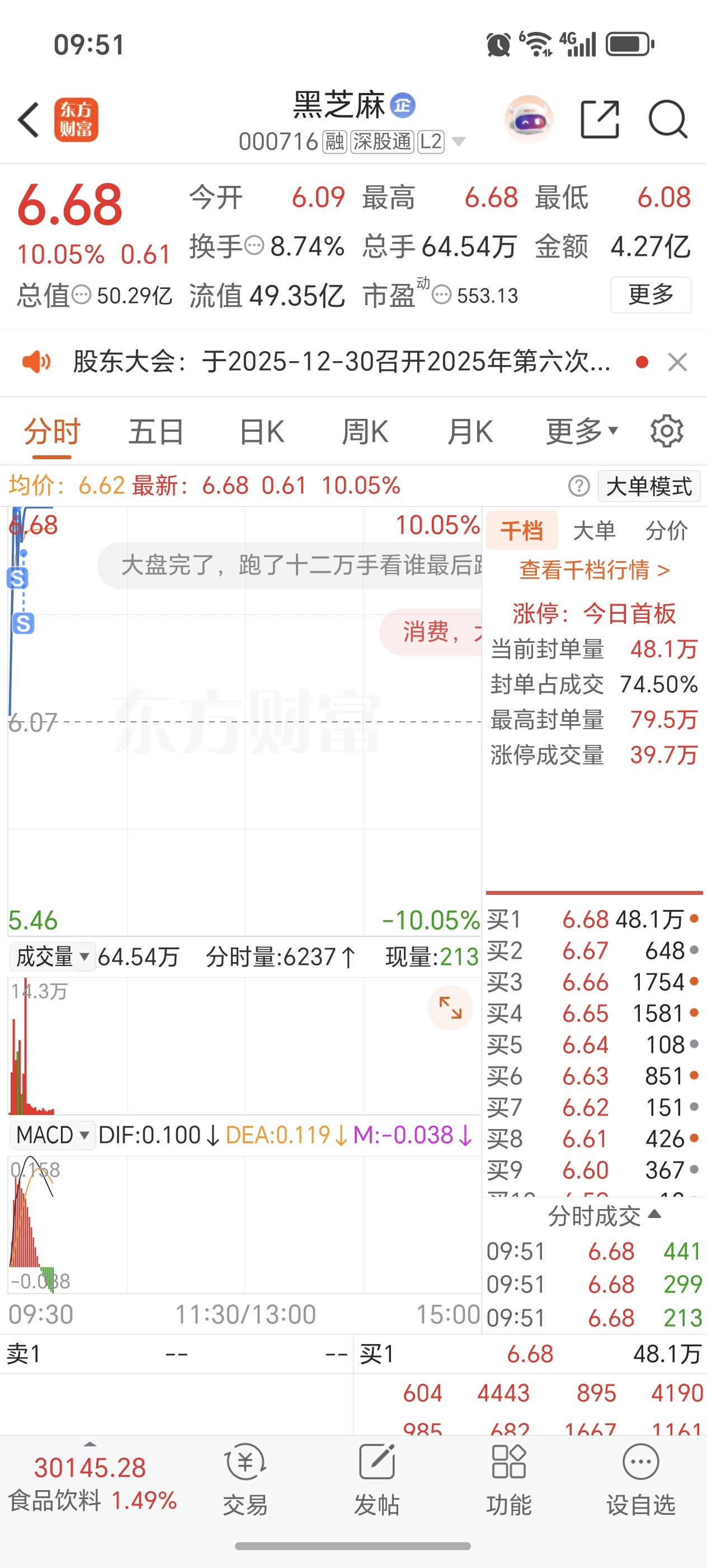 $黑芝麻(SZ000716)$ 拿了几个月,一把给我洗走了。流出了没有格局的泪水