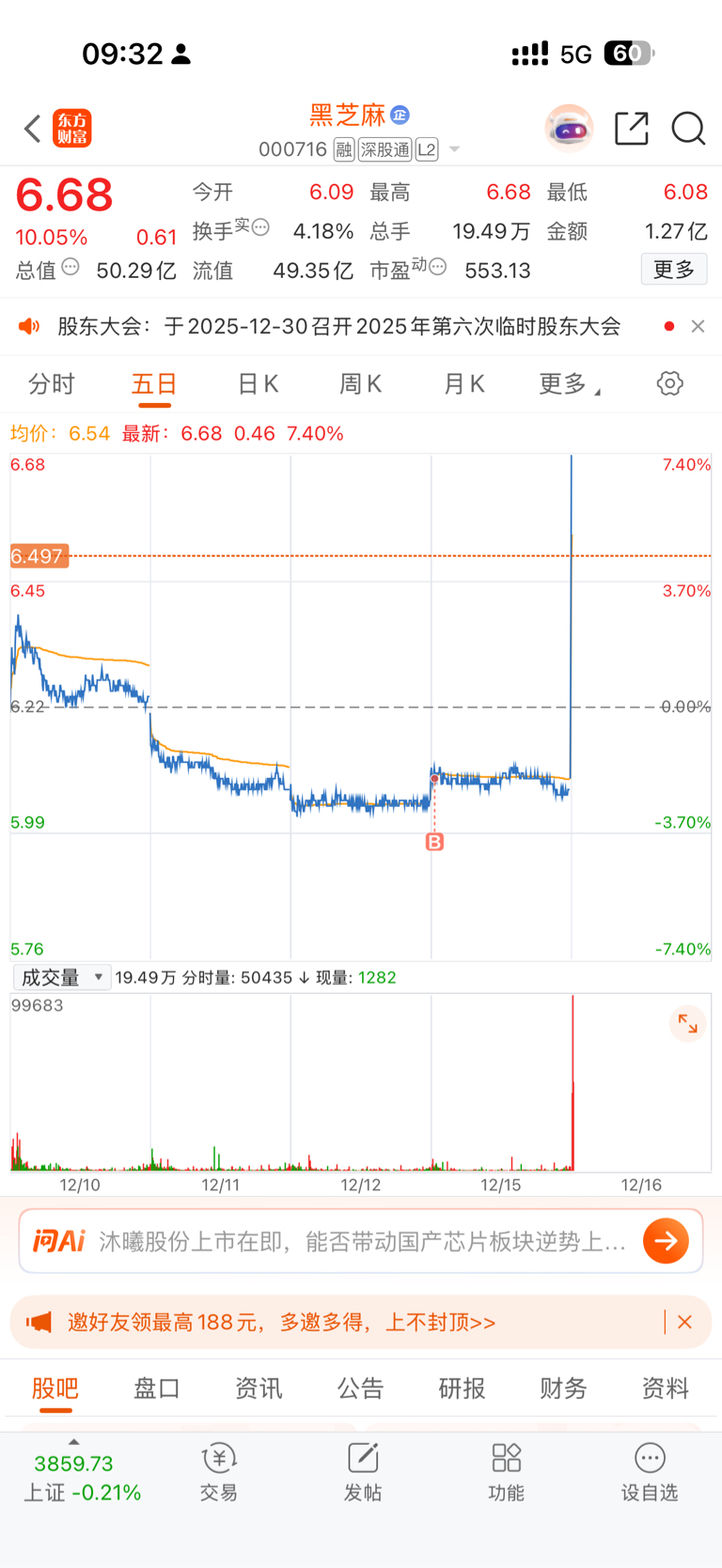 $黑芝麻(SZ000716)$ 我不说话就发图
