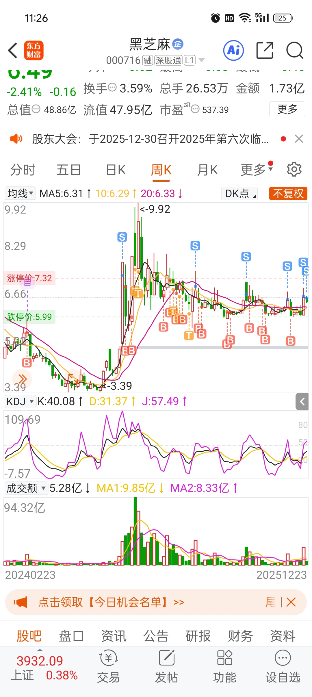 $黑芝麻(SZ000716)$ 黑芝麻不负我。