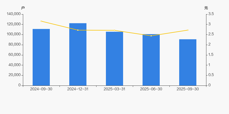 自2024年12月31日以来,公司股东户数连续3期下降,截至目前减幅为25.79%。2024年12月31日至2025年9月30日区间股价下降0.00%。