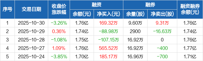 中南股份:融资净买入169.32万元,融资余额1.76亿元(10-30)