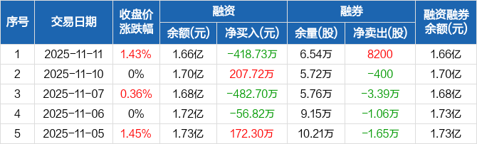 中南股份:融资净偿还418.73万元,融资余额1.66亿元(11-11)