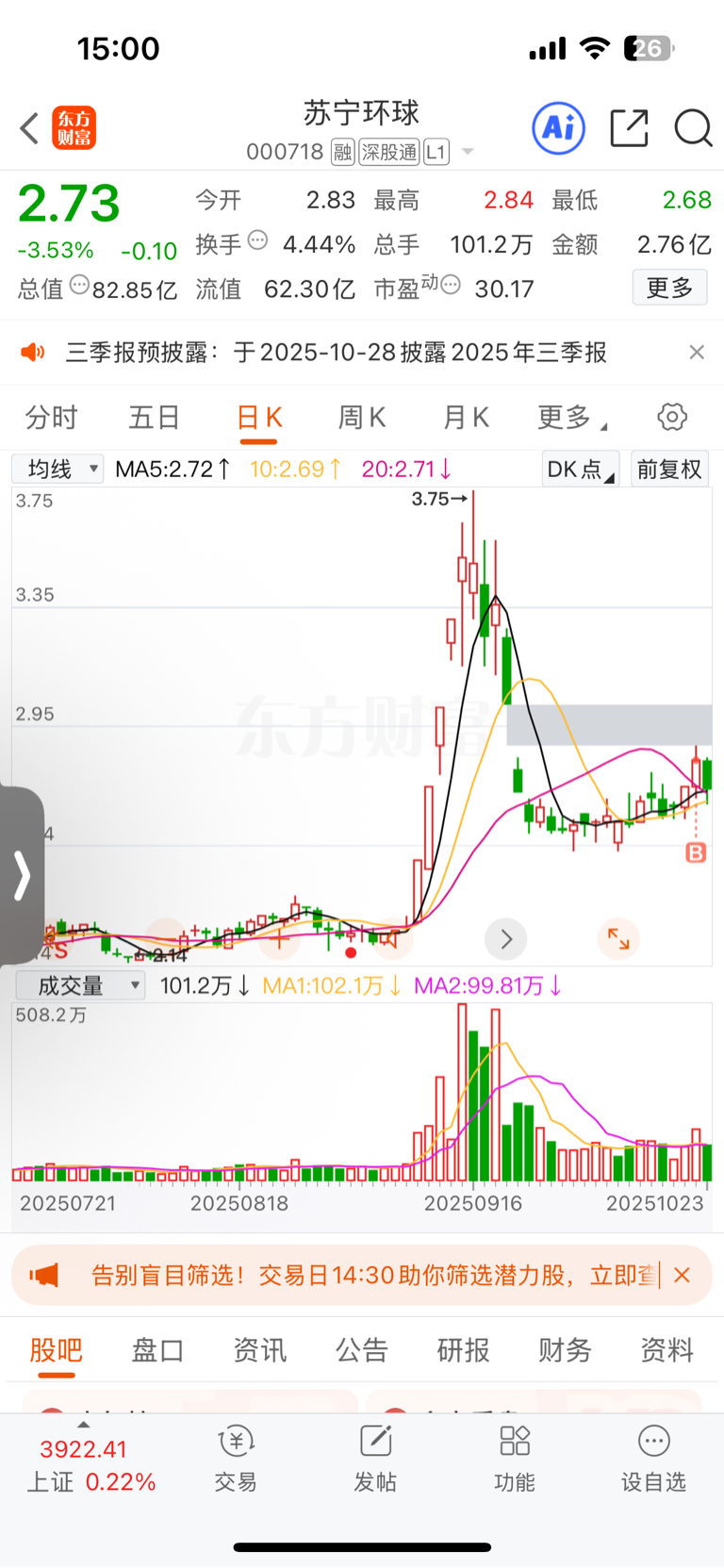 温馨提示: 1.根据《证券法》规定,禁止编造、传播虚假信息或者误导性信息,扰乱证券市场;2.用户在本社区发表的所有资料、言论等仅代表个人观点,与本网站立场无关,不对您构成任何投资建议。用户应基于自己的独立判断,自行决定证券投资并承担相应风险。《东方财富社区管理规定》
