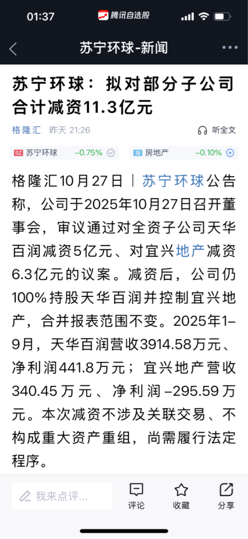 $苏宁环球(SZ000718)$ 明天不知道会不会有一波小行情,减十几个亿出来肯定有大动作的,