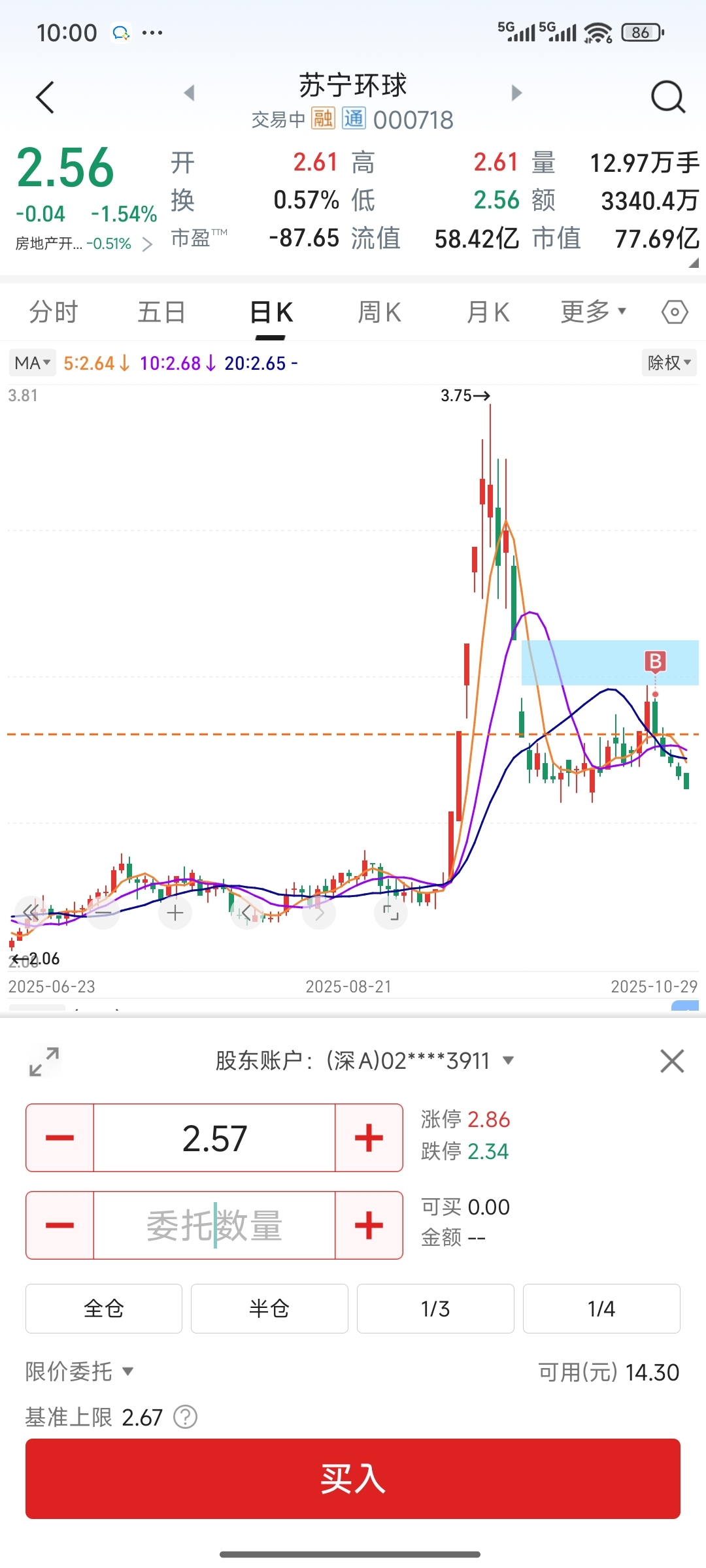 $苏宁环球(SZ000718)$ 买五天,跌五天,牛逼哄哄的