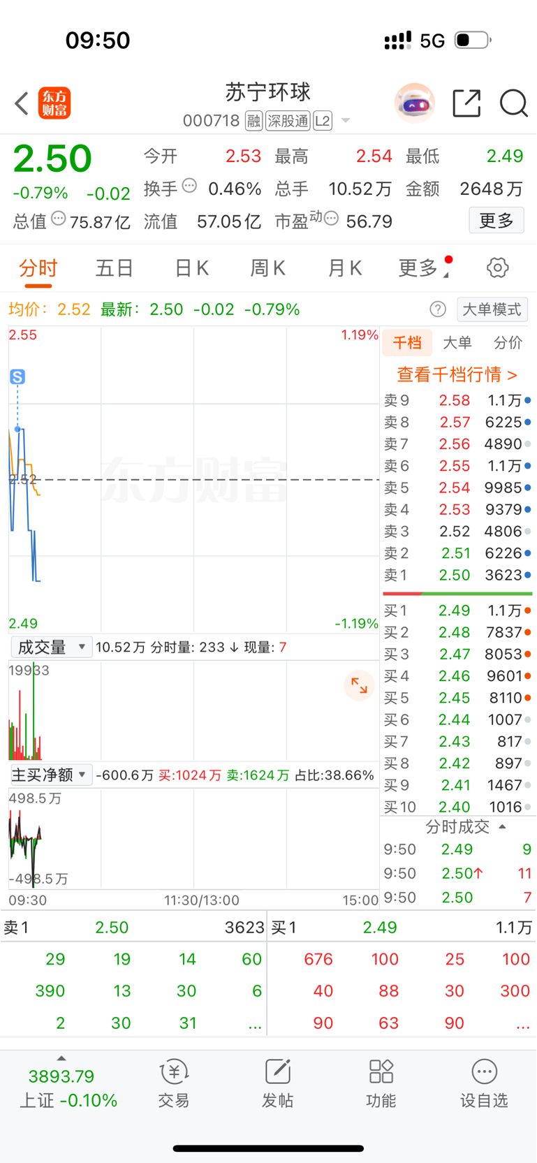 $苏宁环球(SZ000718)$ 挂2.49接,快砸