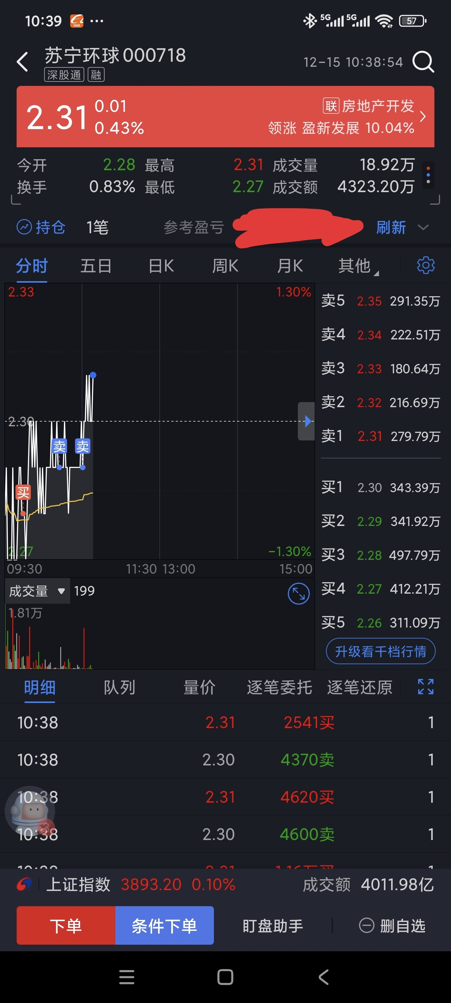 $苏宁环球(SZ000718)$ 下班了,今天又T回两分钱!不贪两分就可以!