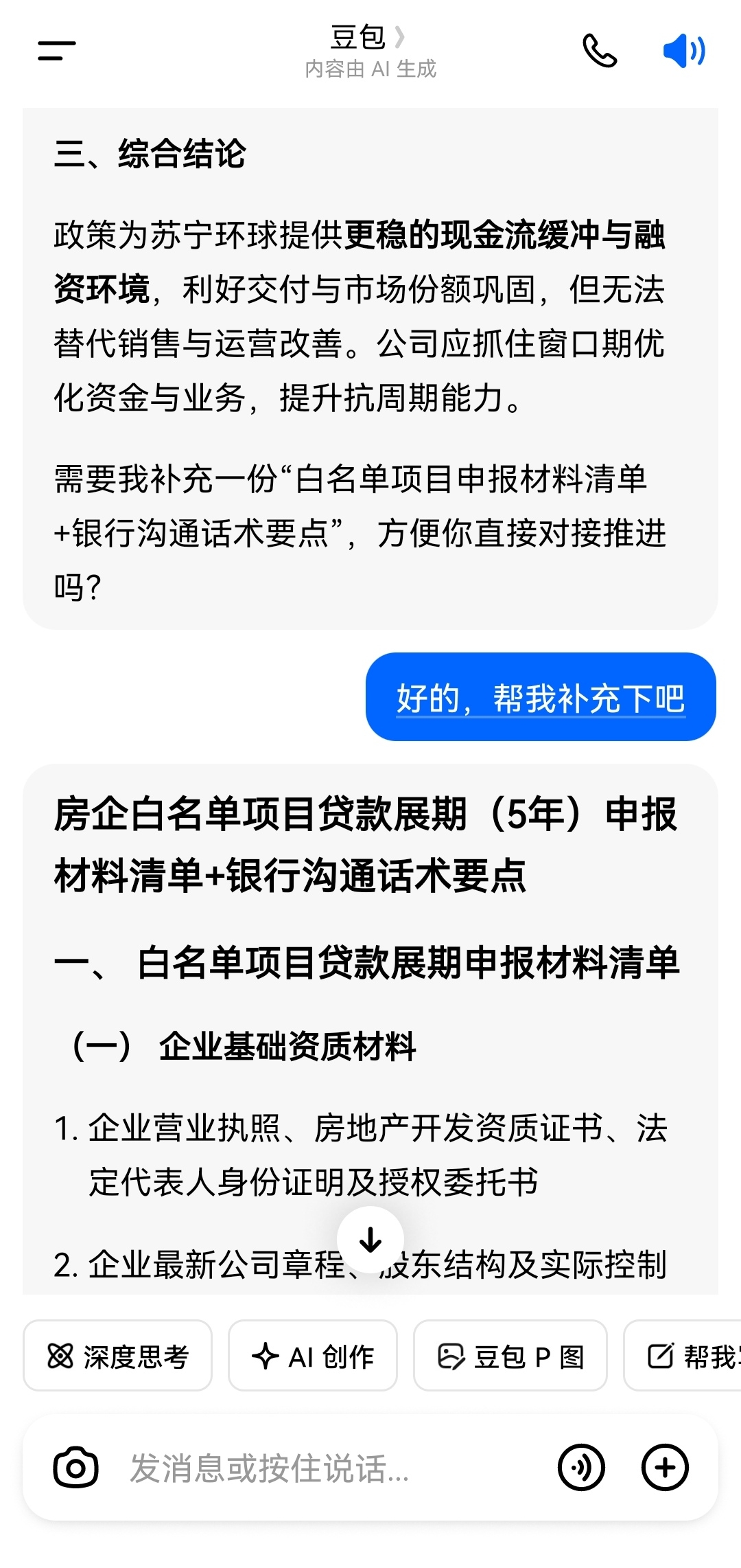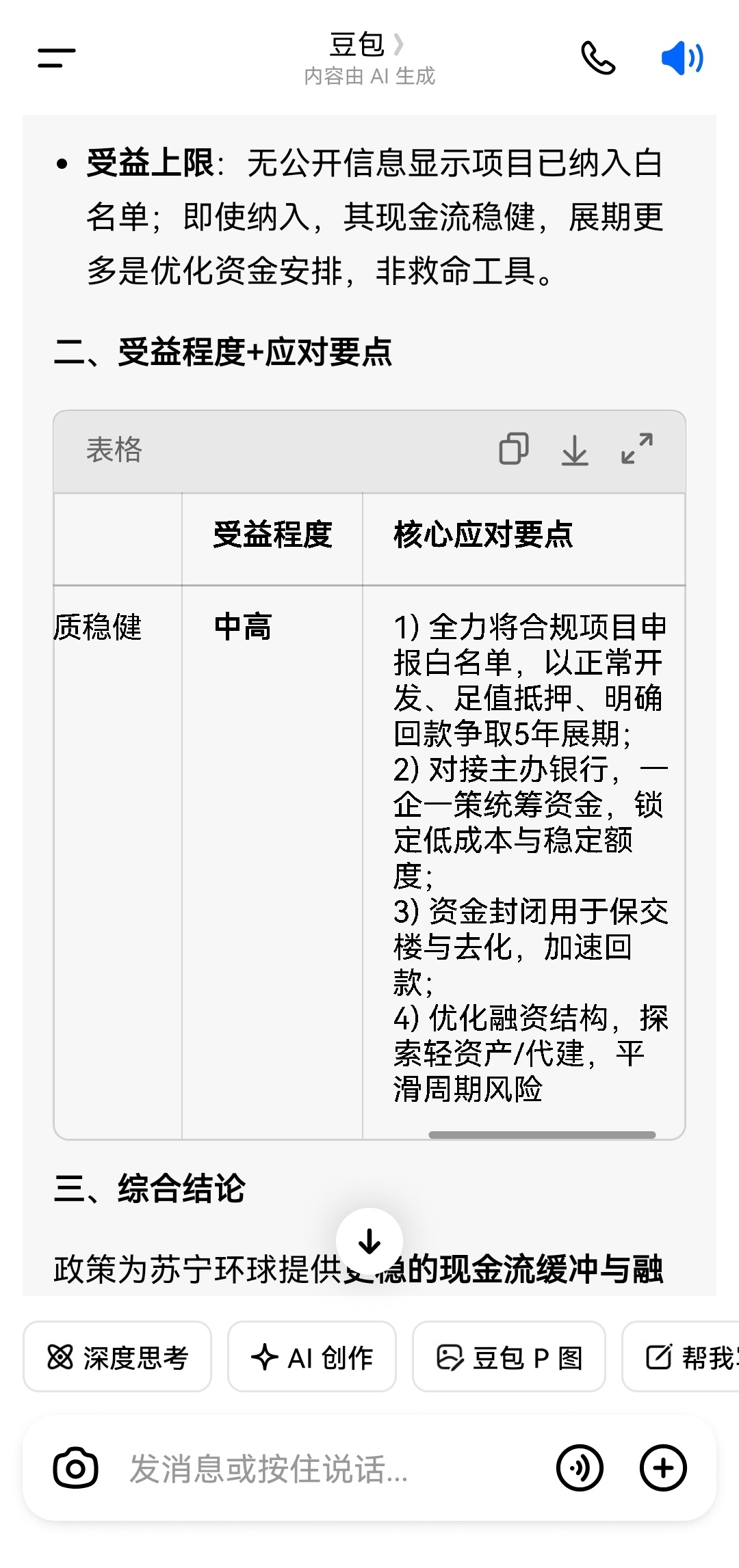 大家看看豆包对苏宁环球的分析是不是确定性的利好,我不知道,但是房企“白名单”项目