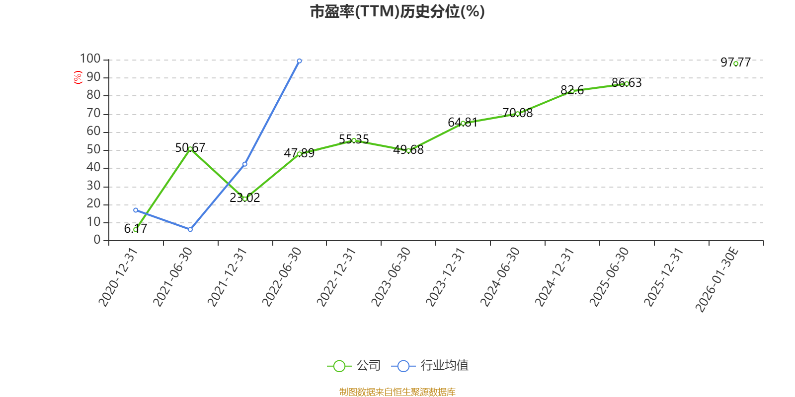 市盈率、市净率为负时,不显示当期分位数,会导致折线图中断。