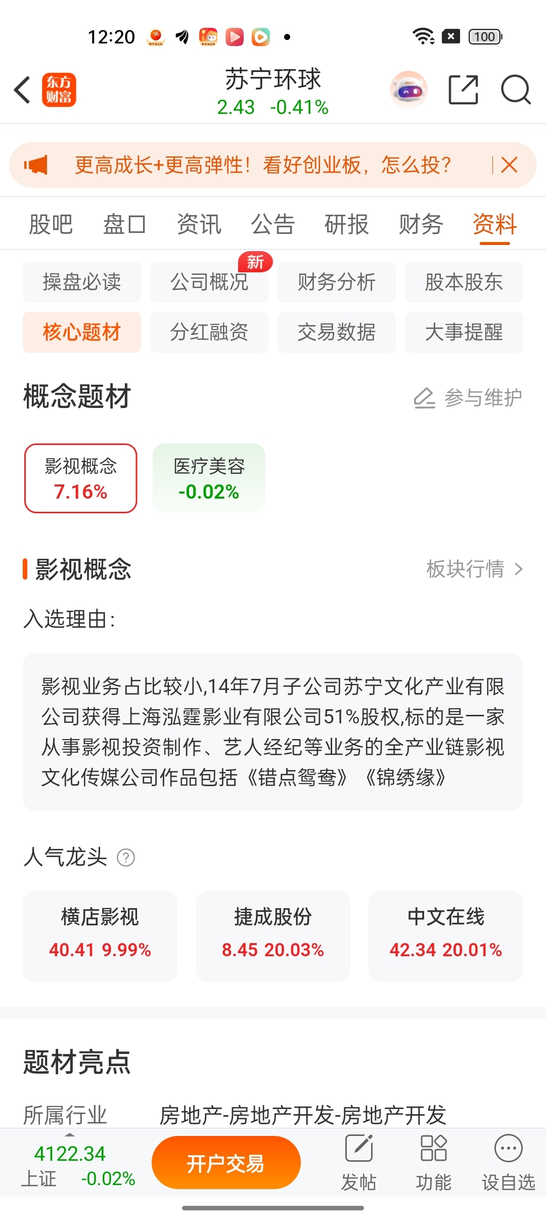 他有影视公司啊,怎么就不涨。