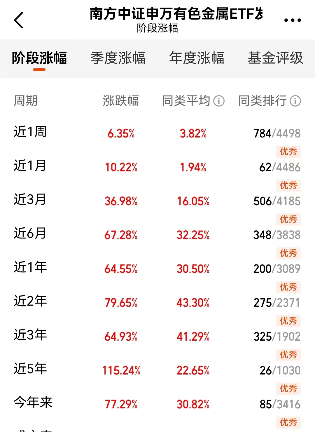 聊聊为什么现在还要买$南方中证申万有色金属ETF发起联接C$(004433)。简单说三点:一是行情在,近三个月涨36%,说明资金没撤;二是逻辑硬,供需缺口+政策利好双支撑。有色板块历来是周期行情里的急先锋,一旦启动,幅度和时间都可能超预期。这基金基金经理管了多年,经验也算丰富,跟踪指数挺紧的。如果认同经济复苏的大背景,有色板块值得放一部分仓位,而这只基金算是省心的选择。#A股突破4000点!下个目标位在哪?#