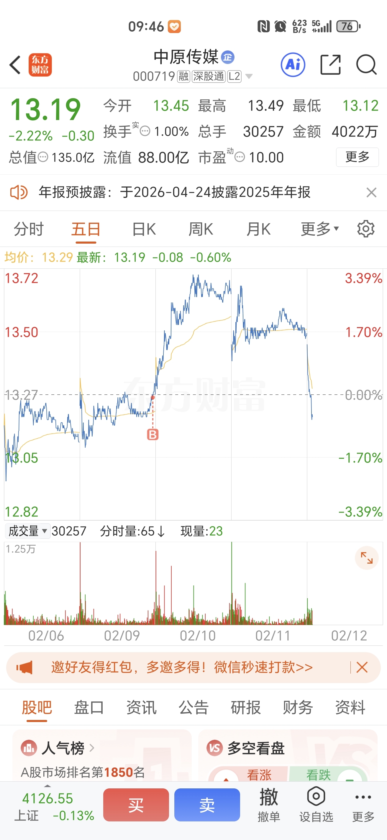 $中原传媒(SZ000719)$ 老登股,你有种,今天清仓