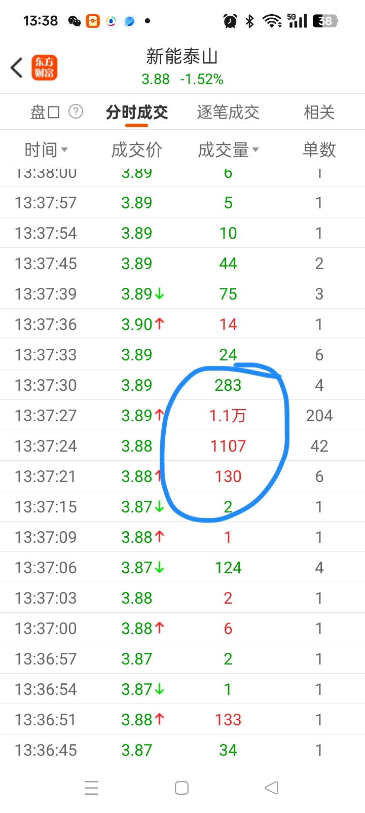 $新能泰山(SZ000720)$ 1.1万手谁扫的?