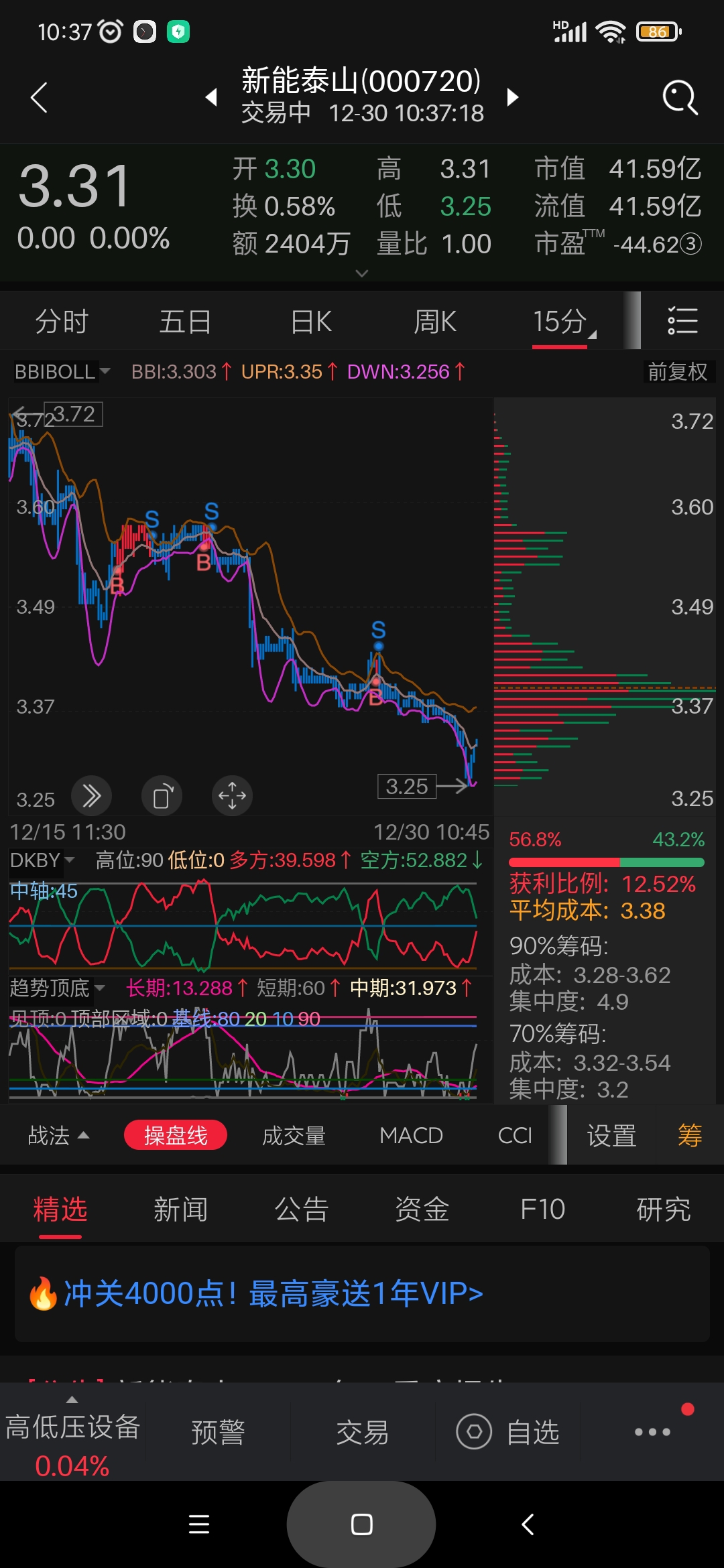 $新能泰山(SZ000720)$  每下跌5分 加1000股  慢慢来  连买入4天了哦