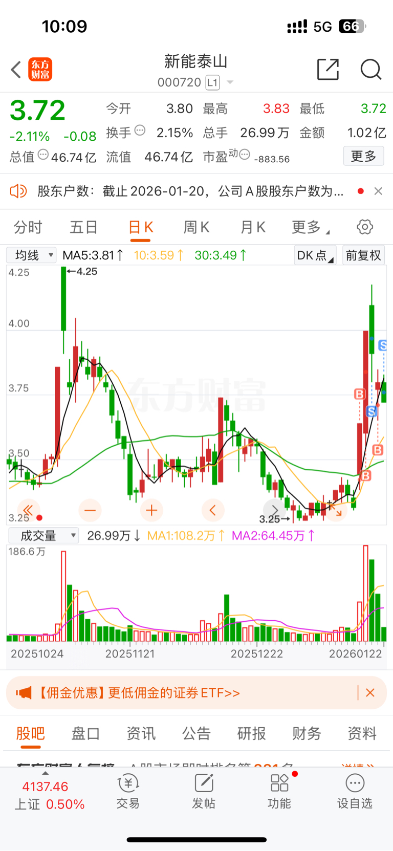 $新能泰山(SZ000720)$ 还好买的早还在下跌