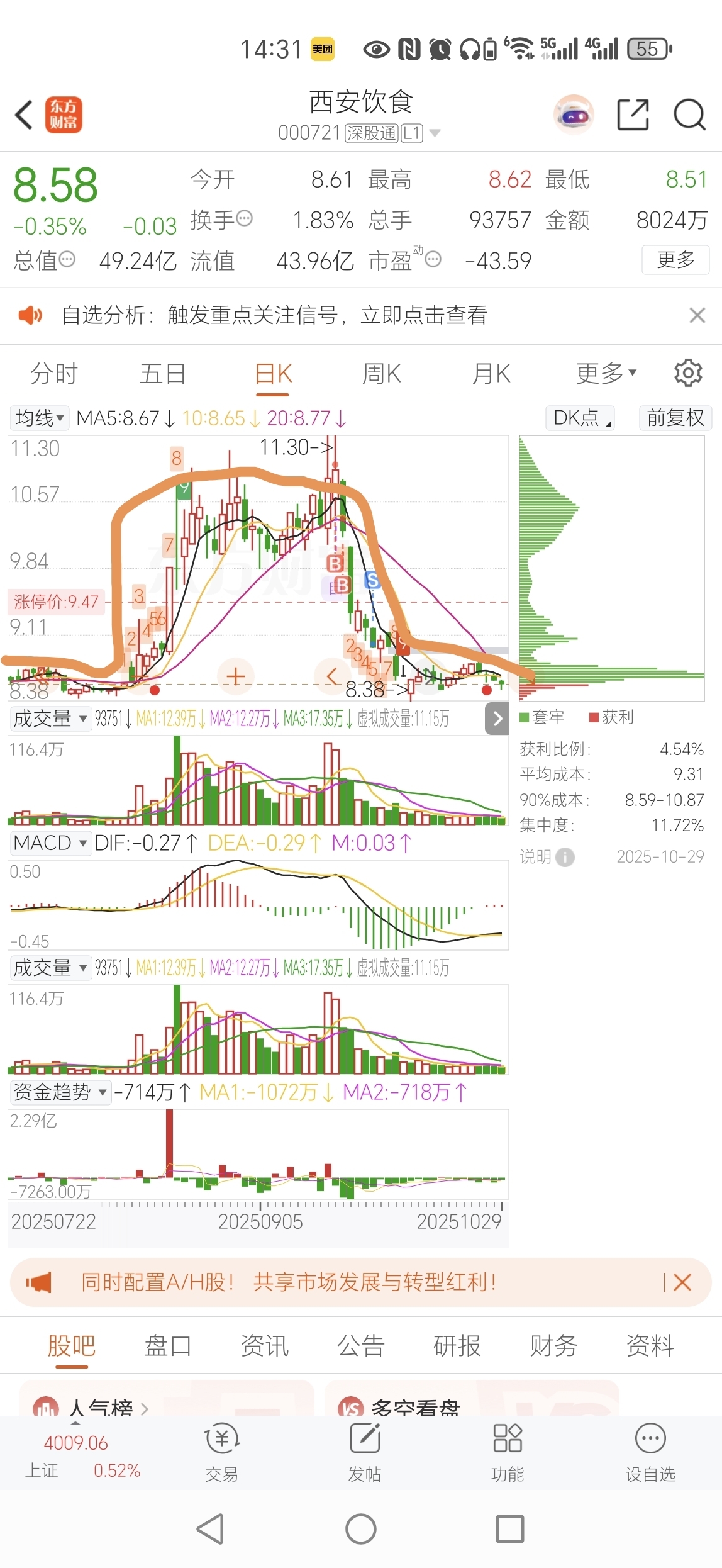 $西安饮食(SZ000721)$ 这个主力就是有病