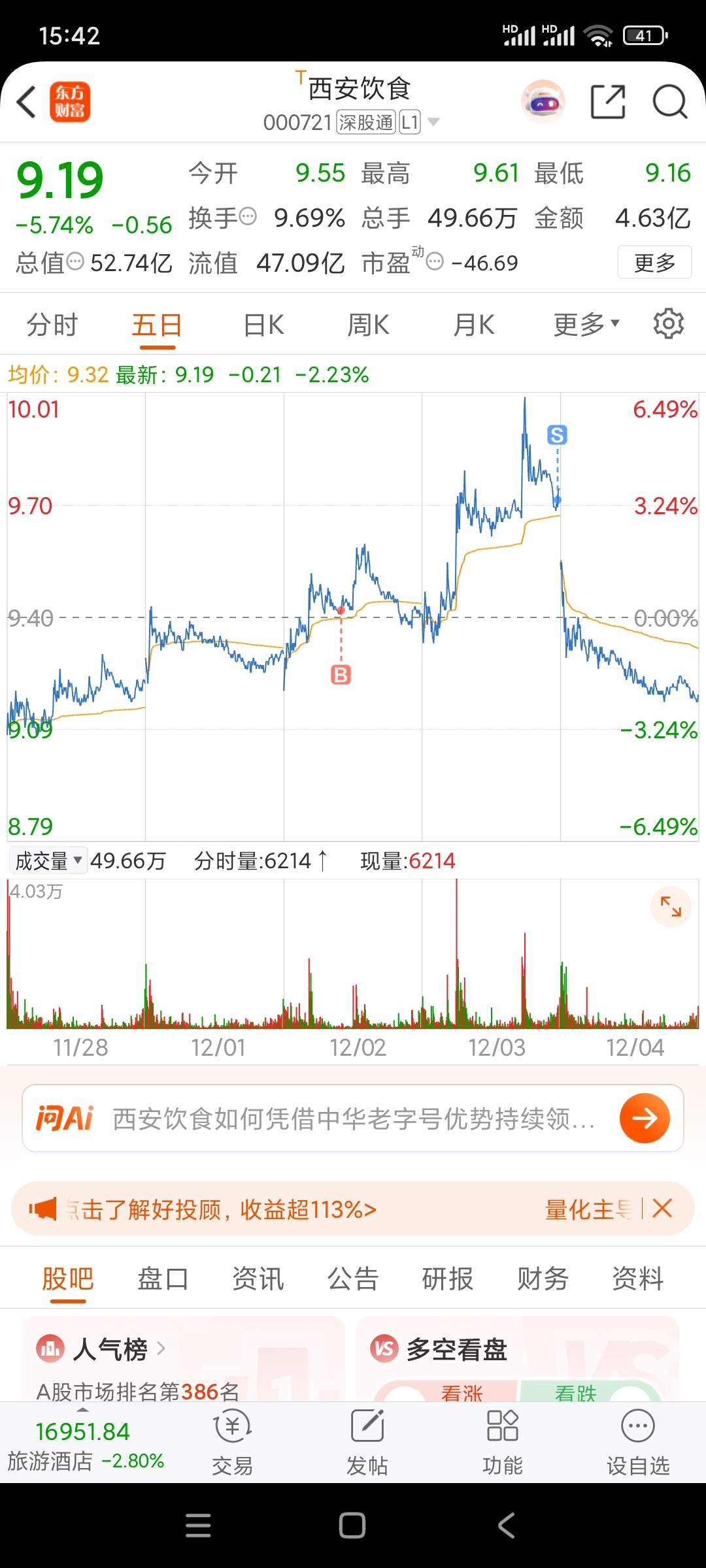 $西安饮食(SZ000721)$