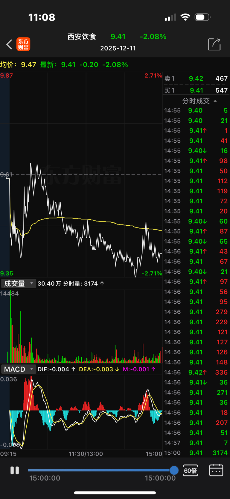 $西安饮食(SZ000721)$ 参考11号复盘走势,上午一模一样