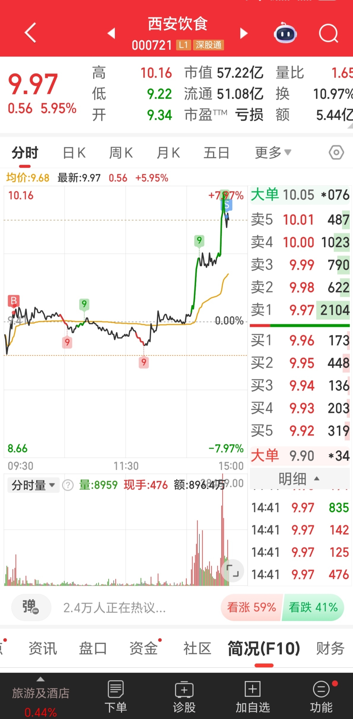 $西安饮食(SZ000721)$ 没让我失望,t了