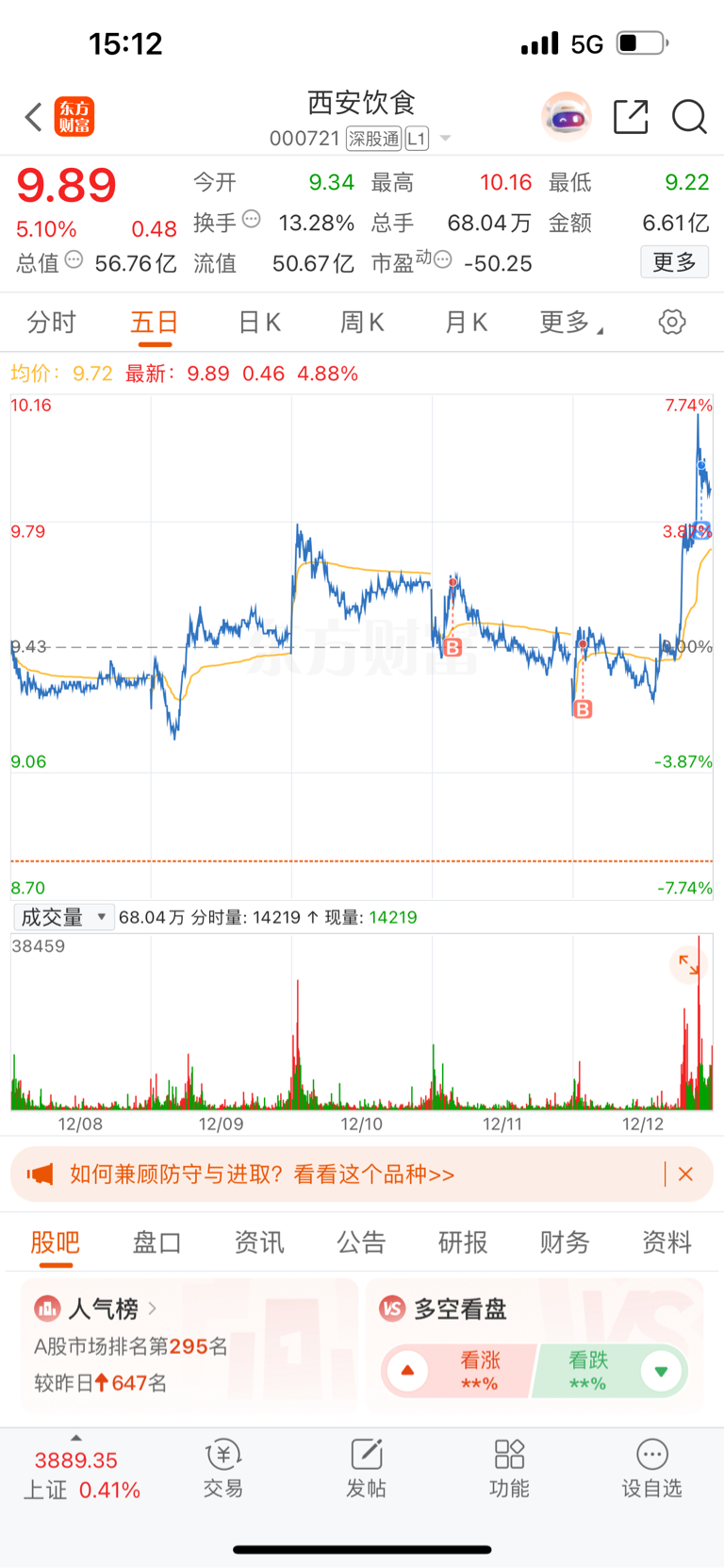 $西安饮食(SZ000721)$ 我出了留个底仓