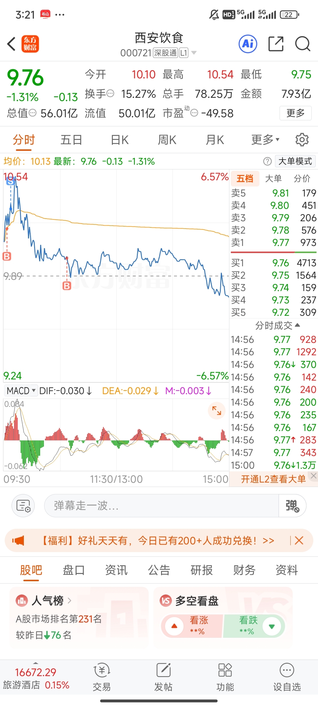 $西安饮食(SZ000721)$ t加1又被抄家了