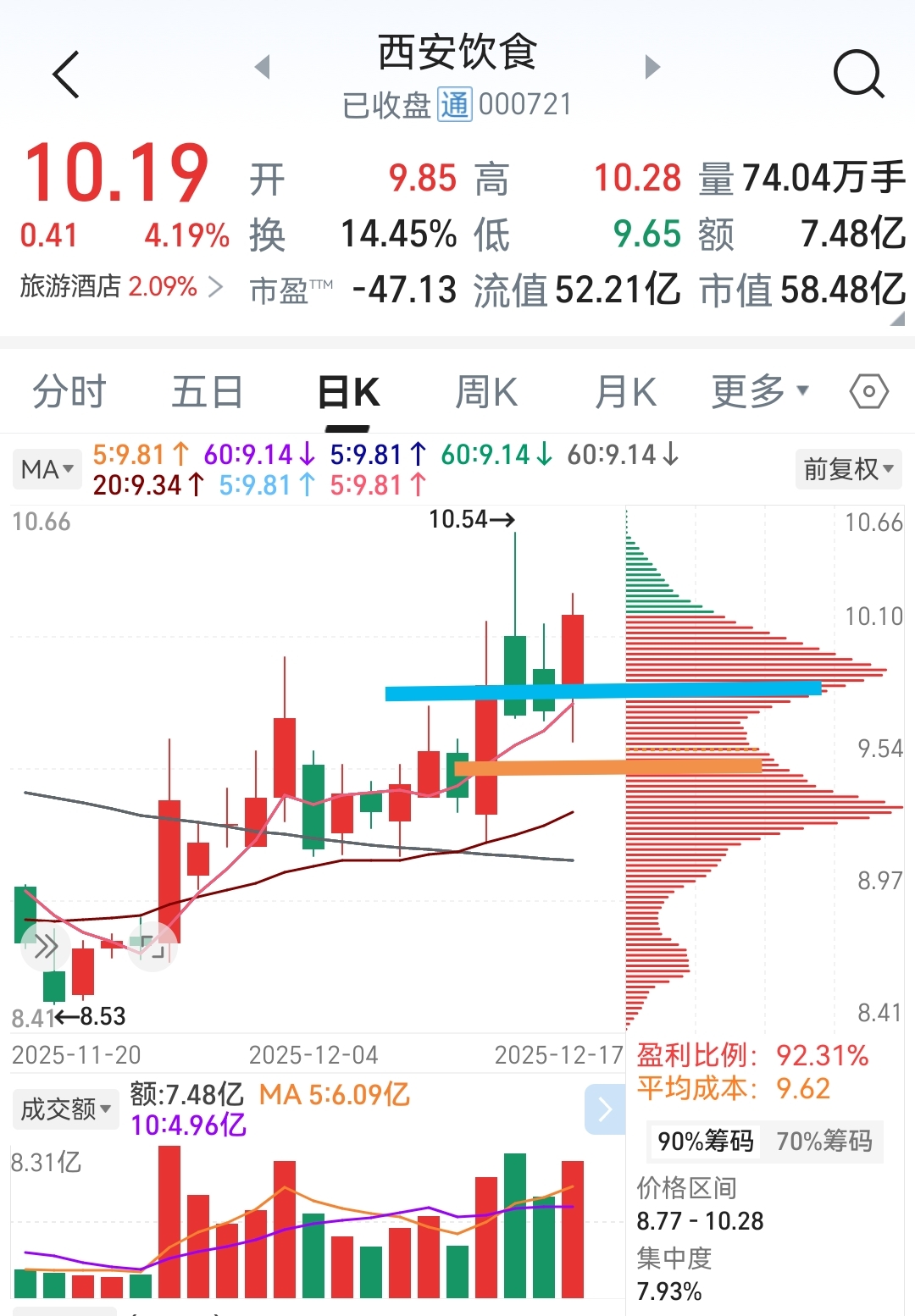 $西安饮食(SZ000721)$ 明日9.9元建仓9.6元止损5日线上持有