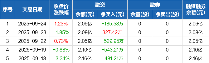 湖南发展:融资净偿还185.58万元,融资余额2.06亿元(09-24)
