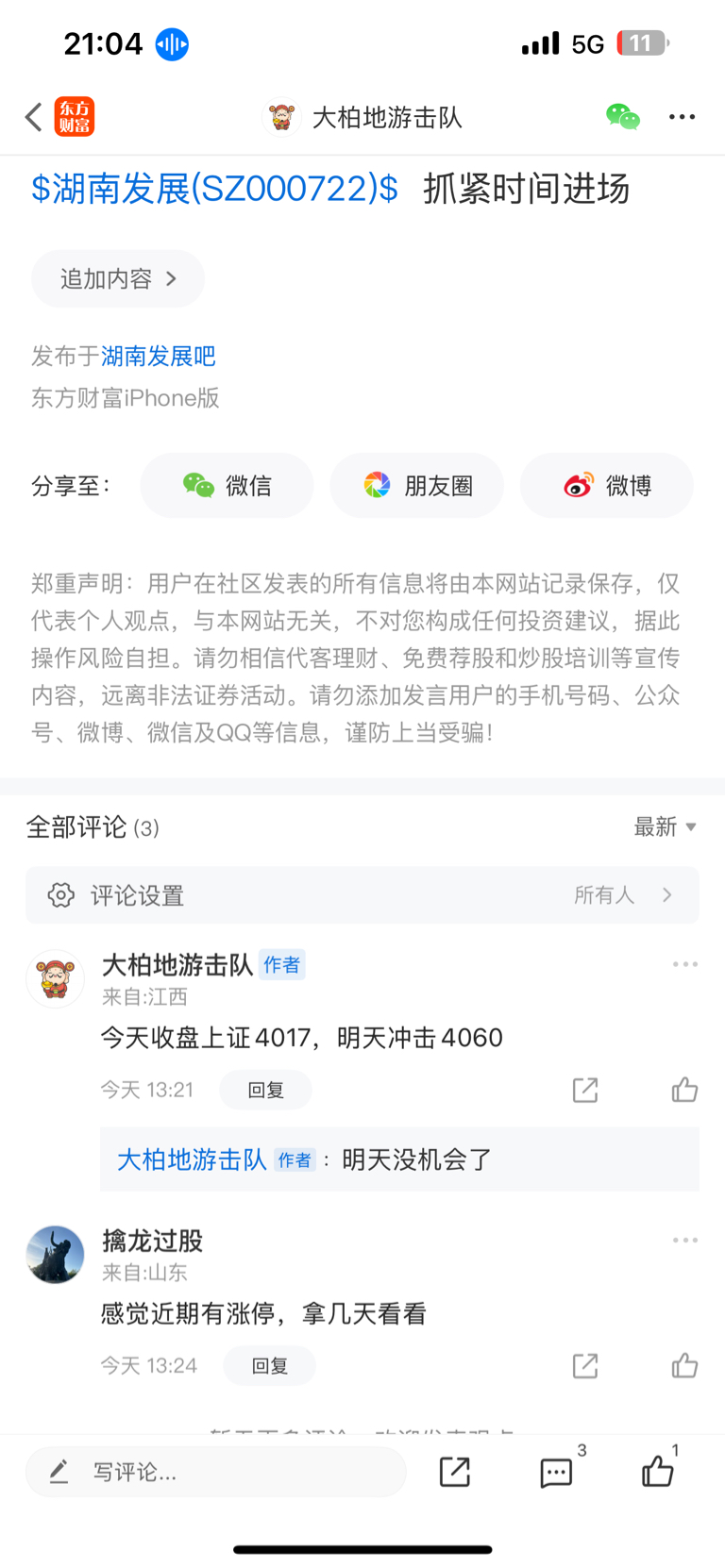 温馨提示: 1.根据《证券法》规定,禁止编造、传播虚假信息或者误导性信息,扰乱证券市场;2.用户在本社区发表的所有资料、言论等仅代表个人观点,与本网站立场无关,不对您构成任何投资建议。用户应基于自己的独立判断,自行决定证券投资并承担相应风险。《东方财富社区管理规定》