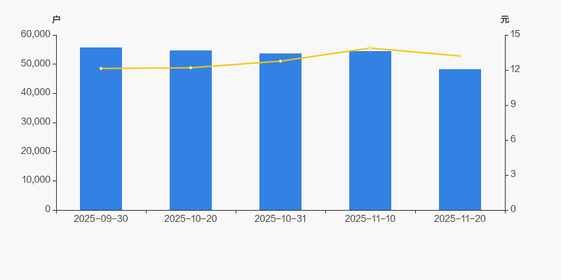 2025年9月30日至今,公司股东户数显著下降,区间跌幅为13.36%。2025年9月30日至2025年11月20日区间股价上涨8.82%。