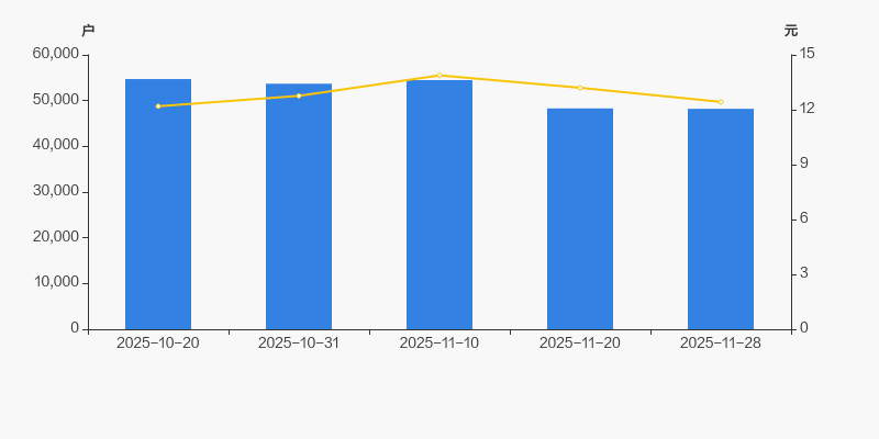 2025年10月20日至今,公司股东户数显著下降,区间跌幅为11.89%。2025年10月20日至2025年11月28日区间股价上涨1.97%。