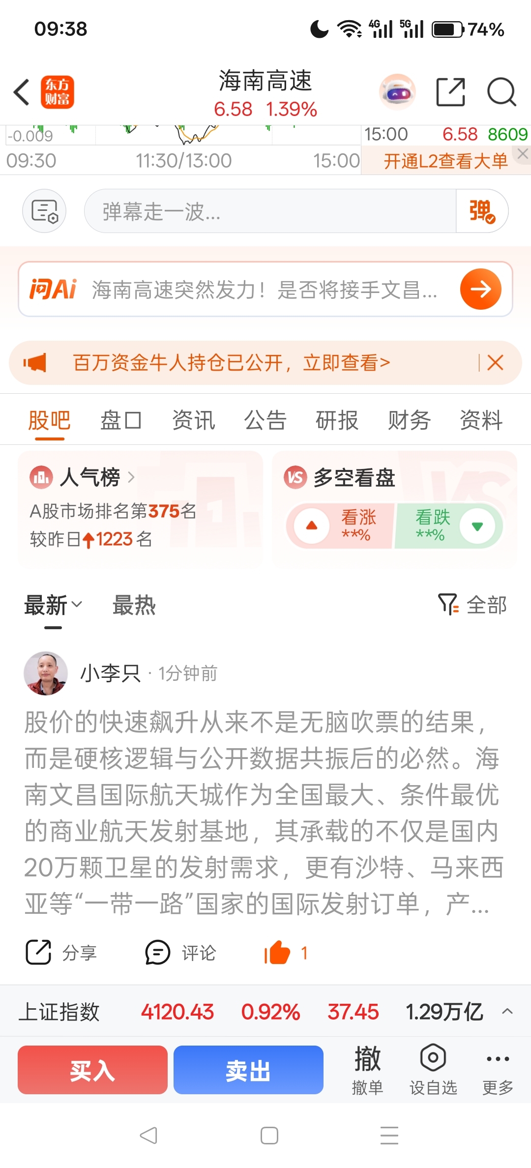 $湖南发展(SZ000722)$ 海南文昌航天5000亿的航天,被市场挖掘,隔壁二哈都涨飞了,海南发展也动一下呀。大家不认识海南发展